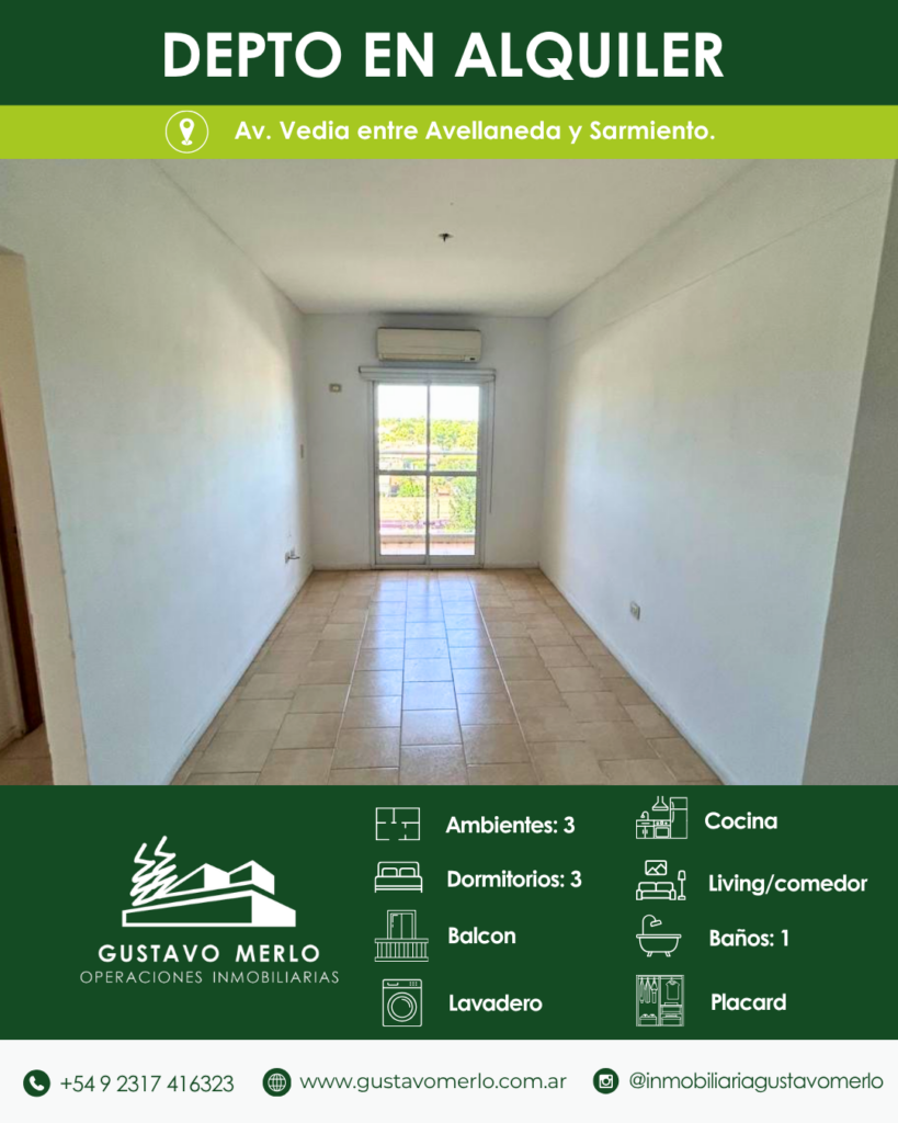 - Dirección Av. Vedia, entre Avellaneda y Sarmiento